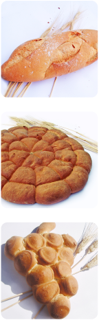 Gran assortit de pans com: d’olives, de coca, de llavors, de taronja, pa per compartir, barres XXL que són ideals per a celebracions i poder farcir.